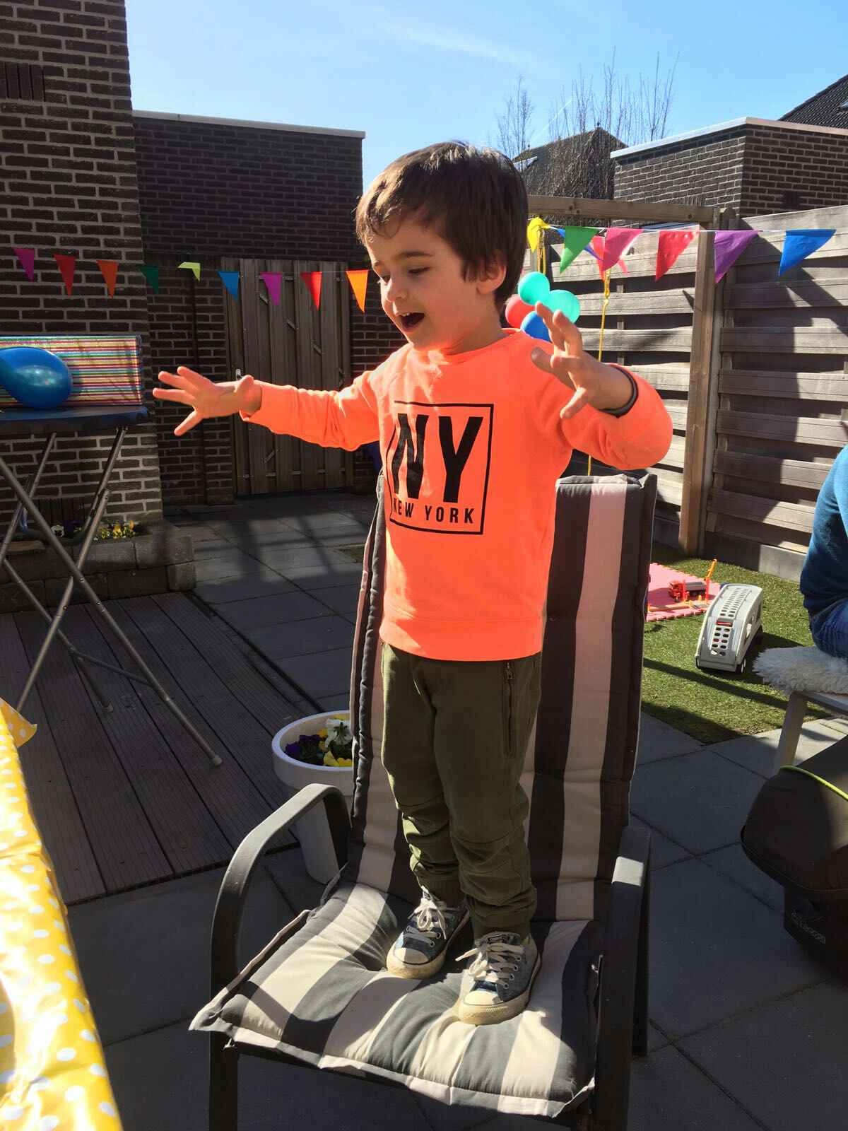 Als een klein hazewindhondje stiefelde hij vanmorgen trots de trap af. "Mama zei dat ik een kanjer ben". Moos had net even daarvoor een flesje melk naar boven gebracht. Naar zijn kleine zusje Mouna die in het grote bed bij San lag. Na een kusje op haar voorhoofd kroop hij weer bij mij op de bank, onder de grijze deken van Heuver Banden - 50 jaar - het kleine kontje nog wat dichter tegen mij aan. "Hard racen ze hè, Papa". Ja, de heren coureurs gaan best wel pijlsnel in downtown Australië. Wij zaten keurig om iets voor zeven beneden naar de tv te koekeloeren al was het Moos eigenlijk om zijn nieuwe speelgoed te doen. Hij weet nog precies van wie hij wat heeft gekregen. Gisteren werd onze kanjer namelijk vier. Want het is een echte kanjer, wat ik je brom! Hij heeft een super zaterdag gehad. Wat heeft ie lekker lopen te spelen met ondermeer Tobi, Lian, Merlijn, Sam en Job. We hebben echt geen kind aan hem gehad ook al lag er gisteravond meer zand binnen dan buiten in zijn zandbak. Het jochie is pas vier maar wat maakte hij weer (opnieuw) grote indruk de laatste weken. Wat was hij lief voor zijn kleine zusje die zo'n beetje driekwart van de dag alleen maar wil huilen. Huilen en nog eens huilen. Het lijkt net of hij oostindisch doof is voor het gekrijs. Urenlang huilt ons mooie meisje maar Moos blijft maar opgewekt, aait haar over haar kleine bolletje en wil haar op zijn manier proberen te troosten. Als hij 's morgens bij ons op de kamer verschijnt is Mouna de eerste die aandacht van hem krijgt. Wij zijn verbannen naar een iets lager podium, papa en mama doen aan stuivertjes wisselen. De ene keer is San de absolute nummer twee, even later passeer ik links de liefde van mijn leven en klim ik op naar de runner up positie. Maar Mouna is en blijft met stip nummer 1 aan zijn vrolijk gekleurde horizon. Moos is nu al als ware de beschermengel voor Mouna. Tja, Mouna kwam net zo snel ter wereld als Max Verstappen vanmorgen zijn Red Bull de baan in Melbourne opstuurde. Blijkbaar heeft dat nekkie en het gestel een paar flinke klappen opgelopen door de zeven wonderen van een Hardenbergse bevalling. De eerste weken leek er weinig aan de hand. Ze sliep mooi door, haar mondje stond voortdurend op standje lachebekje. Helaas juichten wij een beetje te vroeg. Nu, ruim acht weken later weten we dat een baby ook gigantisch pittig, stressvol en vermoeiend kan zijn. Het meisje kan er helemaal niets aan doen maar ze voelt zich op dit moment niet prettig. Ze huilt niet alleen meer omdat ze honger heeft, een vieze broek of omdat ze smacht naar aandacht van haar createurs de Mouna. Neuh, wij hebben officieel een huilbaby die het vooral gemunt heeft op de rust overdag. 's nachts komt ze maar één, soms twee keer. Maar overdags weigert ze te slapen en praat ze via huilen, heel veel huilen. Om gek van te worden in de goede zin van het woord. Het vreet energie en we krijgen weinig mogelijkheden om de accu volledig op te laden. Maar Moos blijft het leven kleuren, hij tekent de liefde voor zijn kleine zusje in al haar facetten in. Het is een kanjer....Gisteren kreeg hij loon naar zijn harde werken. Gisteren stond hij volledig in het middelpunt van de belangstelling. Hij weet nog niet wat het is maar Moos heeft zich de laatste weken compleet weggecijferd uit liefde voor zijn kleine zusje. Bewonderingswaardig. Onze wallen zijn ondertussen groter geworden dan onze gezichten die soms op standje onweer staan. Wat heb ik de laatste tijd ontzettend veel bewondering gekregen voor San. Die met engelengeduld Mouna soms uren achter elkaar in de draagzak in slaap probeert te wiegen....Ze kan zelf al met een draagzak om en Mouna erin de wc bezoeken. Overdag maak ik er niet veel van mee, ben ik aan het werk. Het crisiscentrum is thuis. Ik klaag niet hoor....Wij zijn gezegend dat wij een tweede wonder mochten begroeten. Begrijp mij en ons niet verkeerd. Maar wij lopen de deuren plat bij Doktoren, Osteopaten en Chiropracters. Johannesbroodpitmeel in de voeding, Rescue (what's in a name) druppels en allerlei goedbedoelde adviezen proberen wij maar gewoon uit tegen beter weten in. Alles om ons meisje een leuk en huilvrije uurtjes te bezorgen. Afzuigkap aan, stofzuiger een half uur laten draaien, geluiden uit een app die baarmoeder geluiden na zou bootsen....etc etc Wij eten normaal maar de energie vreet ons bijkans kaal. En Moos, Moos fladdert als een lachend musje overal tussendoor. Hij is een kanjer van jewelste....Hij zeurt niet, klaagt niet....en gisteren kreeg hij op zijn vierde verjaardag de dag van zijn leven. Hij was zo blij met het kadootje van zijn zusje. Hij kuste haar en knuffelde haar.....en even later trootste hij haar met de woordjes huil maar niet Mouna, jij wilt toch straks ook een gebakje...? Wat hebben wij toch bijzondere kinderen. Mouna lacht waar ze kan maar de huilbuien winnen voorlopig het gevecht op punten en wij liggen uitgeteld in de hoek, meestal acht tellen. Wij zijn al blij als ze zoals vanmorgen eventjes een half uur in bed kan en wil liggen....Dat is pure winst. Tuurlijk, het wordt allemaal beter maar met een kanjer als Moos praat je over verzachtende omstandigheden.